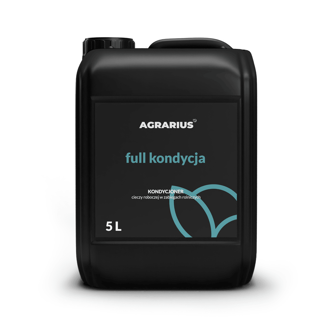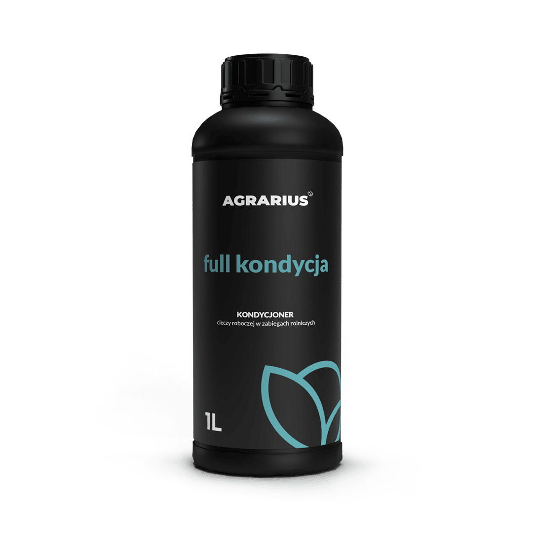 The innovative water conditioner developed by AGRARIUS acts as a supplement to treatments aimed at improving wetting, increasing the efficiency of active ingredient uptake, improving mixability, dispersion, and emulsifying properties, and enhancing the adhesion of the spray solution to leaves. The use of Full Kondycja is an effective and economical solution to the problem of low water quality. Thanks to the presence of fulvic acids, the water conditioner demonstrates high effectiveness. Full Kondycja has the ability to improve adhesion and stimulate the mechanism for the uptake of active ingredients to maximise the effectiveness of conditioning the spray solution. The product contains organic acids and surfactants that do not inhibit the action of fungicides. Through the synergistic combination of surface-active substances, it beneficially affects surface tension, thereby reducing undesirable foaming of the spray solution. The main ingredient of the water conditioner is fulvic acid, which finds wide application in agriculture. It is particularly recommended for clay-rich soils where water retention problems occur. Fulvic acids improve the ability of soils to retain moisture and increase air permeability, which has a beneficial effect on plant roots. Fulvic acids have chelating properties, meaning they can form complexes with minerals such as iron, copper, zinc, and other micronutrients, making them more readily available to plants. Water conditioner containing fulvic acids acts as a natural immune stimulant for plants, aiding them in combating pathogens and environmental stresses. It also increases plant resistance to diseases and adverse weather conditions.