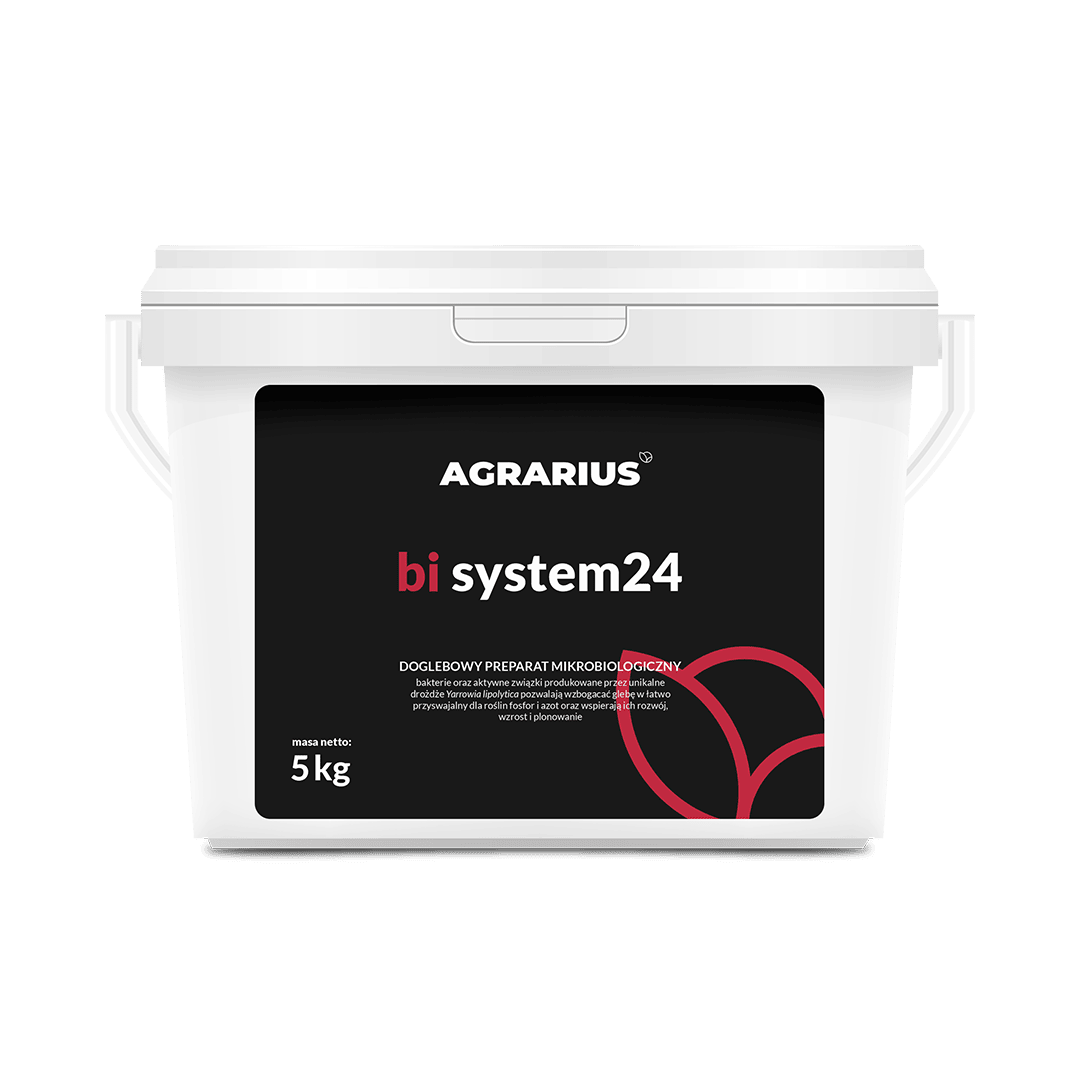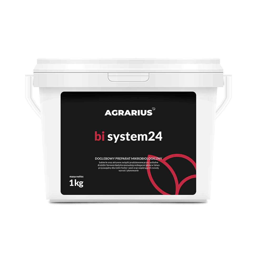 Znane na rynku preparatów bakteryjnych szczepy Bacillus azotofixans i Bacillus megaterium, zdolne do wiązania azotu atmosferycznego i udostępniania fosforu, zostały wzbogacone o trzeci komponent w postaci biomasy i metabolitów drożdży Yarrowia lipolytica. Wysoka efektywność poparta wieloletnimi doświadczeniami dwóch polskich firm AGRARIUS i Onesano S.A sprawia, że bi system24 znacząco wyróżnia się na tle innych preparatów, bazujących na potencjale mikroorganizmów glebowych.