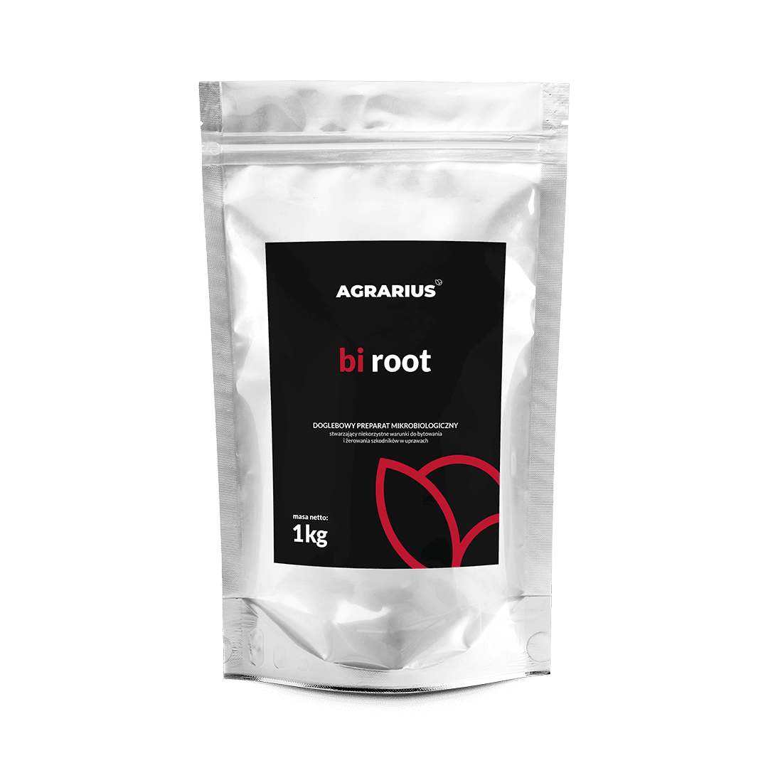 Specjalistyczny doglebowy preparat bakteryjny bi root zawiera starannie wyselekcjonowane bakterie Bacillus, które przyczyniają się do tworzenia korzystnych warunków do rozwoju roślin i jednocześnie niekorzystnego środowiska dla szkodników niszczących korzenie (poprzez wytwarzanie różnego rodzaju metabolitów). Preparat bi root umożliwia skuteczne i naturalne ograniczanie szkodników w różnych rodzajach upraw, zarówno rolnych, jak i sadowniczych oraz warzywniczych. Ten mikrobiologiczny środek w bezpieczny sposób ogranicza uszkodzenia roślin uprawnych na skutek działania szkodników glebowych i zapobiega powiększaniu się ich populacji. Bi root zmienia środowisko, w którym naturalnie bytują i zimują szkodniki oraz przyspiesza rozkład i mineralizację materii organicznej, co przekłada się zarówno na zapobieganie szkodnikom w glebie, jak i lepszy rozwój roślin.