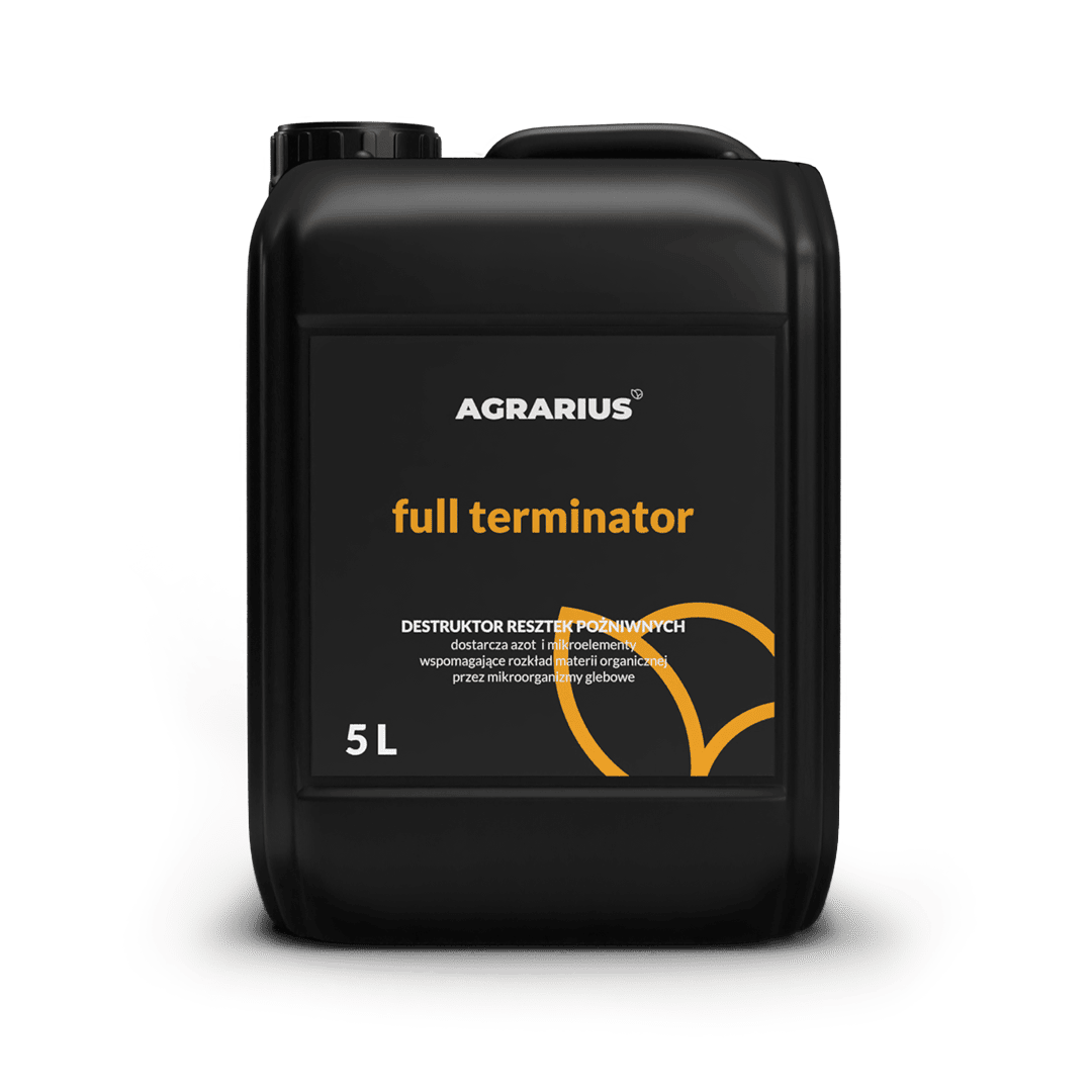 Použitie deštruktorov rastlinných zvyškov urýchľuje produkciu pôdy pre následné plodiny a umožňuje lepšie plánovanie budúcich výsevov alebo výsadieb. Full terminator od AGRARIUSu podporuje množenie nepatogénnych saprofytických húb a baktérií obsiahnutých v produkte bi słoma.